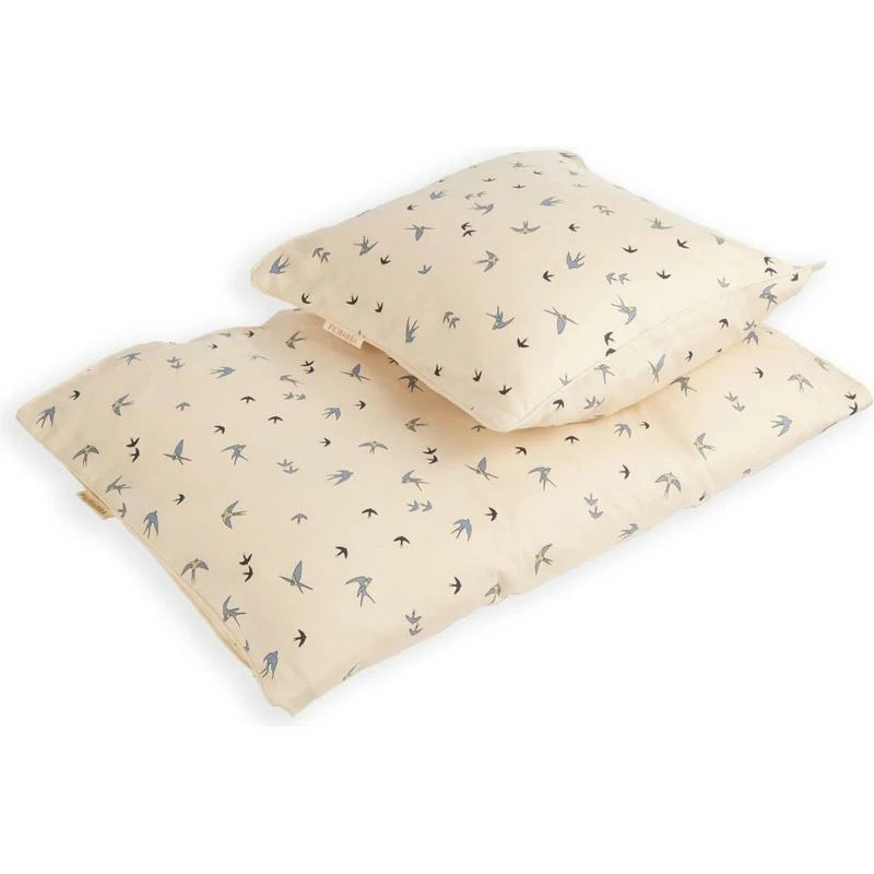 Filibabba Baby Sengetøj Dancing Swallow Blue 70x100cm